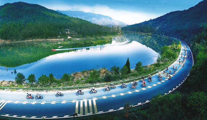 首届安徽省“皖美山水”骑行赛(石台站)暨首届中国石台公路自行车公开赛骑行现场