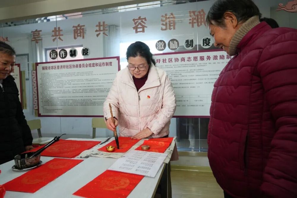 除了精彩的主题宣讲,活动现场还设置了写春联送祝福环节。程爱霞带领市家庭文化研究会的书法爱好者们挥毫泼墨,笔墨飘香间,一副副饱含美好寓意的春联被送到群众手中,既传递了新春的美好祝愿,也让文明理念随着春联走进千家万户。