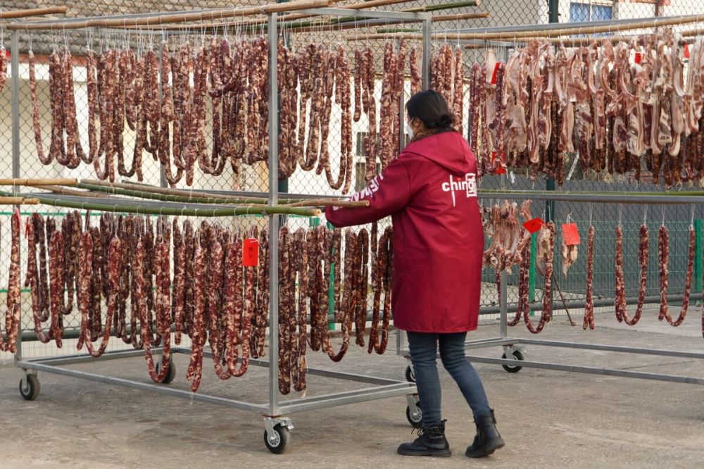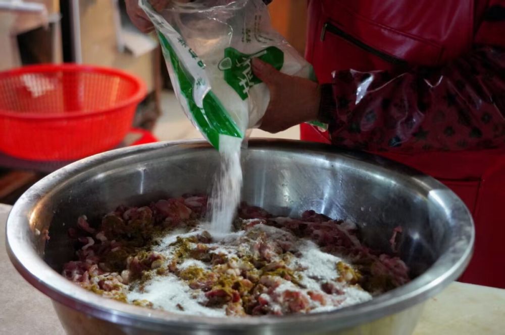 一旁的申大妈正盯着工作人员调制馅料。她这次做了200多元钱的香肠,打算和儿子家分着吃。“先做点解解馋,过年之前还得再来一次!”她表示,现场加工能自己选肥瘦、定口味,晾晒半个月左右就能享用,而且“越晒越香”。