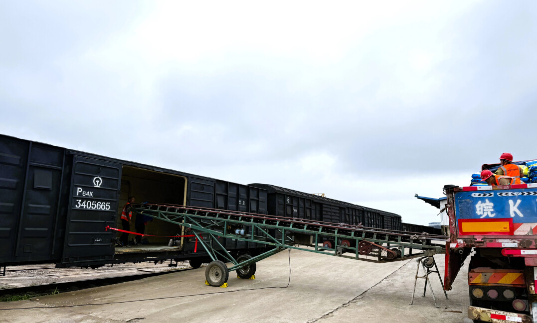 目前,皖北的阜南县盛产的小麦、玉米等采用集装箱与火车整车运输,去向覆盖范围更为广泛,南到广东、广西、海南,西到湖南、甘肃、四川等地,发运量达到日均8车。