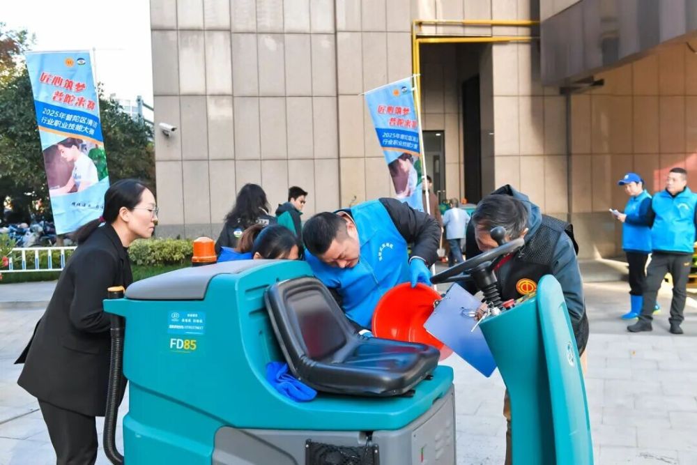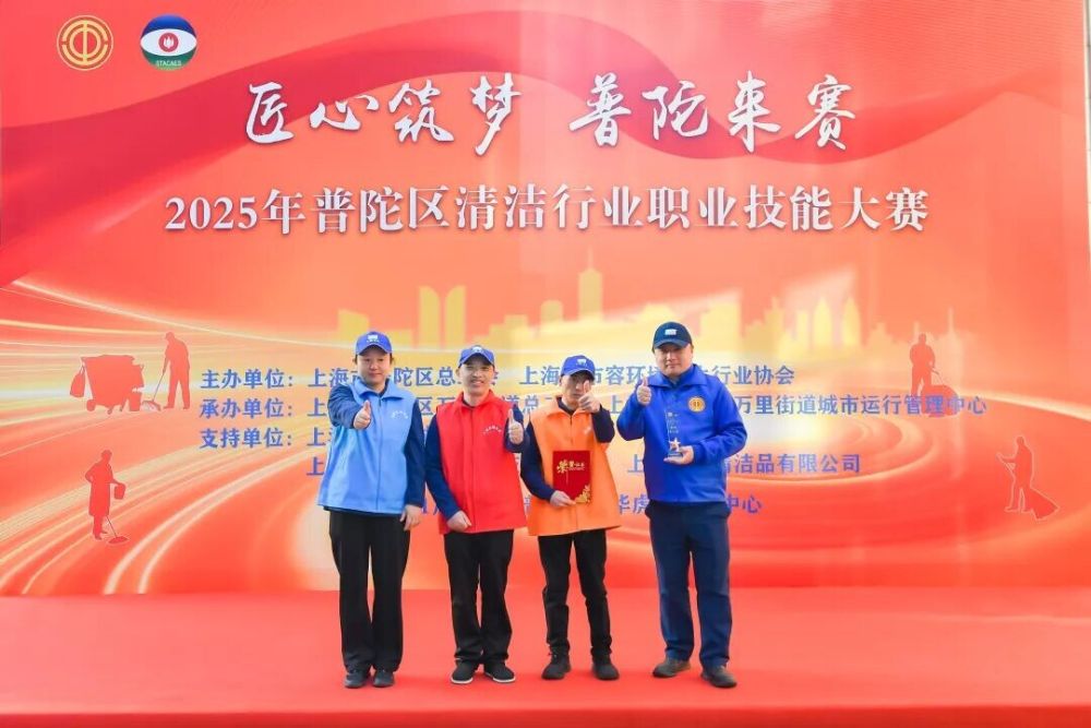 11月25日,大华虎城商务中心广场热闹非凡,由上海市普陀区总工会、上海市市容环境卫生行业协会联合主办,普陀区万里街道总工会承办的“2025普陀区清洁行业职业技能大赛”在此举行。这场以“匠心筑梦普陀来赛”为主题的技能比拼,不仅是清洁从业者的“竞技场”,更是普陀区推动行业高质量发展、建设美丽普陀的生动实践。