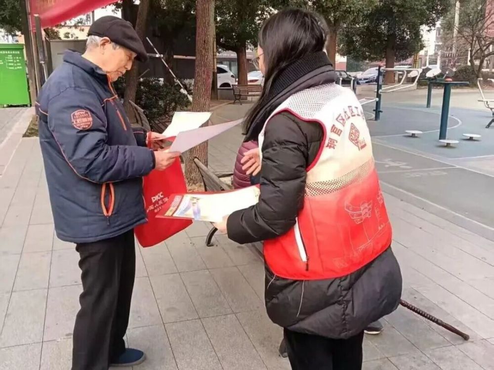 1月8日,西湖镇乌木山社区组织志愿者开展“垃圾分类迎新年 绿色生活进万家”主题宣传活动,让绿色环保理念在新的一年里更加深入人心。(西湖镇 韩敏)