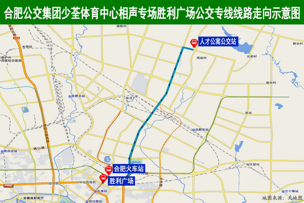 合肥公交集团少荃体育中心相声专场地铁接驳线线路走向示意图