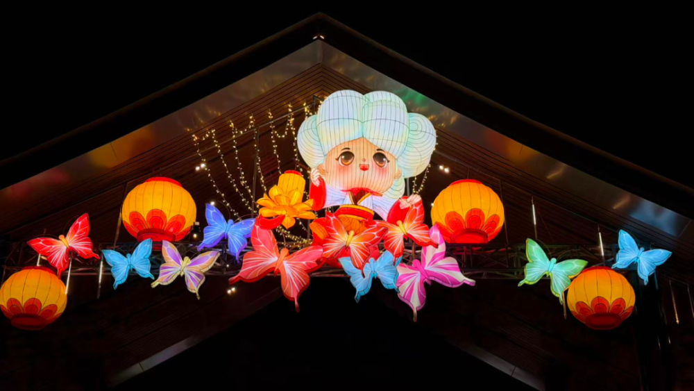 而在以“十八弄方言灯”为主题的休憩长廊中,非遗罗店彩灯与书写着“嗲”“扎台型”等沪语词汇的灯饰相映成趣。灯光摇曳间,熟悉的沪语韵味仿佛在空气中流转,唤起人们对旧日时光的温情记忆。