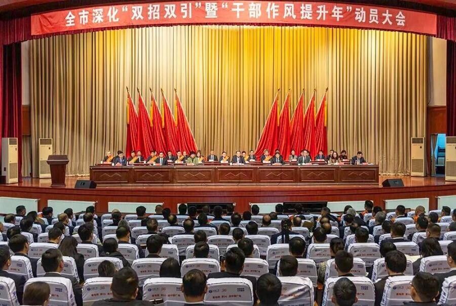 2月24日,全市深化“双招双引”暨“干部作风提升年”动员大会在市政务中心举行。图为大会现场。