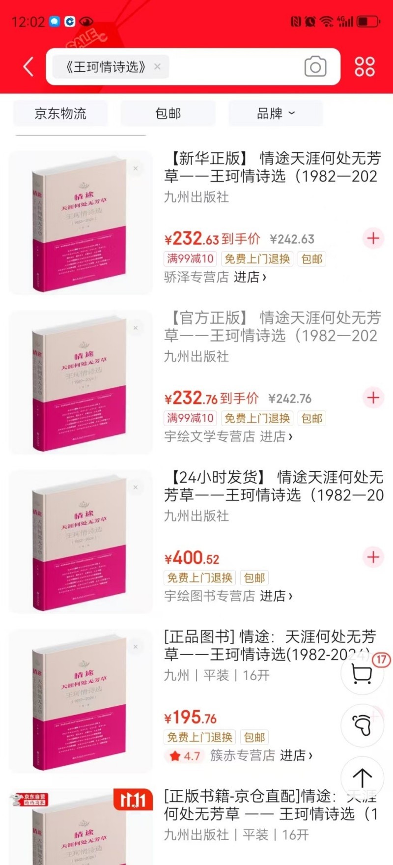 东南大学现代汉诗研究所所长、博士生导师王珂教授的情诗选2024年10月出版后,受到了读者的喜欢,出现了诗集出版少有的溢价现象,原价198元的诗集被有的网上书店标价400元。《名作欣赏》及时发表评论文章,有助于读者更好地阅读这本情诗集。