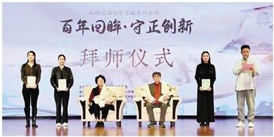 交流会现场还举行了庄严而温情的拜师仪式。来自杭州艺术学校的宋媛媛、杨丹、陈鼎、邵馨如四位老师,分别向杭剧省级代表性传承人汪谊华、王与昌行拜师礼。这不仅是一次技艺传承的“接力”,也为构建“院校-院团”一体化人才培养体系筑牢了基础。