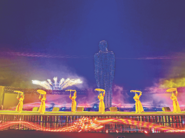 如果说无锡非遗代表着历史的厚度,那么学院设计则指向未来的可能。昨日晚间的大秀上,一组服装秀格外引人注目。它们并非来自国际大牌,而是出自江南大学设计学院的学生之手。这场“方无隅”——江南大学新锐服装设计师作品专场走秀,展现了无锡乃至中国时尚新生的力量。