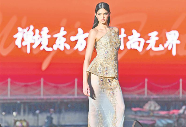 3月21日,拈花湾景区微笑广场人头攒动,观众席座无虚席,围栏处“长枪短炮”挨挨挤挤,入口处挤满了向内张望的游客。纽约时装周·亚太无锡秀第二日,继FENDI和JIWENBO等中外顶级品牌亮相后,Giannina Azar、GLAUDI等国际高定设计师品牌接连登上秀场,拈花湾时尚热浪迭起。