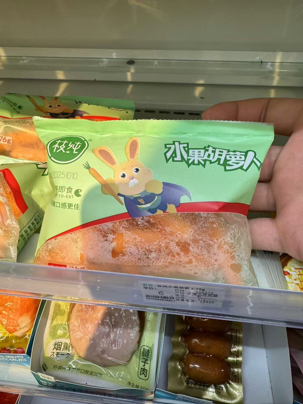 “最近几个月,这款水果胡萝卜经常一上架就售罄。”合肥市包河区邻几便利店的店员王永雷告诉记者,“很多顾客会专门来问什么时候补货,有的甚至一次购买五六包。”