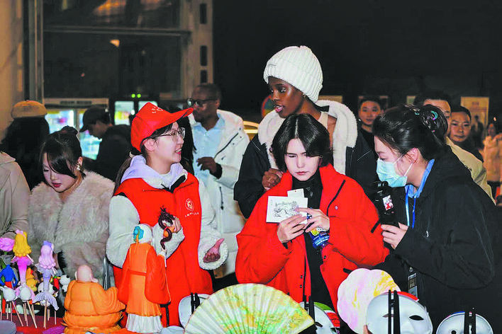 “这个是糖画,我们的非遗项目……”来自安徽农业大学国际教育学院的留学生苏泽在参与文明观演答题后,又被活动的非遗展示深深吸引,在志愿者的一一介绍下,对中国的非遗文化又有了新的认识:“看到这些剪纸、糖画,能感受到中国传统文化的魅力。”
