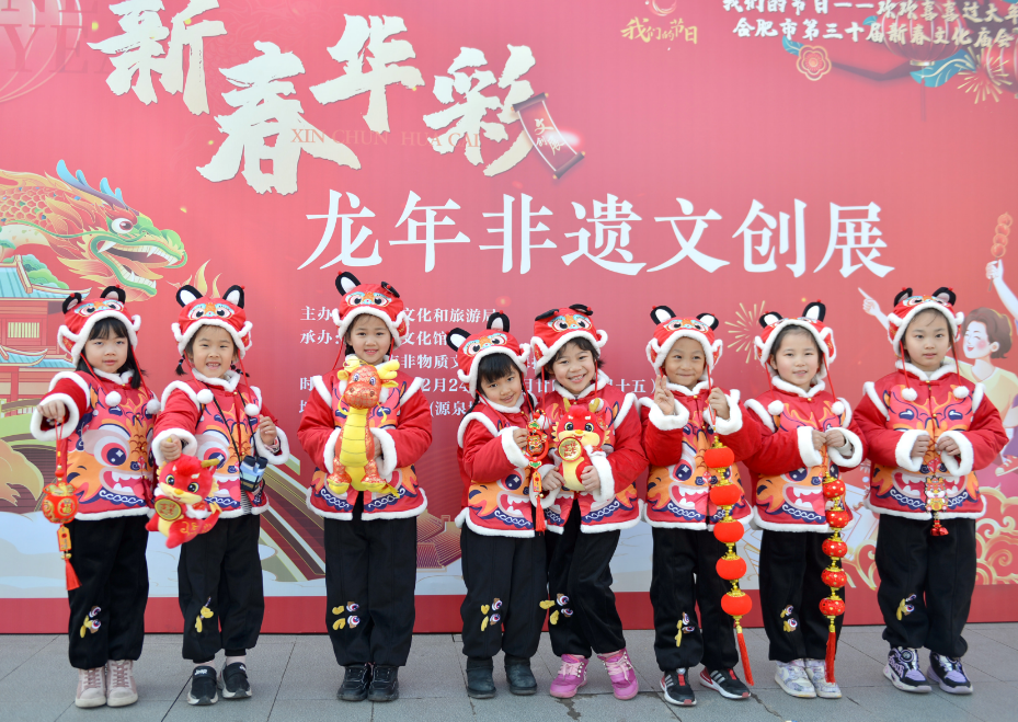 春节期间,合肥市第三十届新春文化庙会系列活动之“新春华彩”龙年非遗文创展在合柴1972源泉博物馆展出。