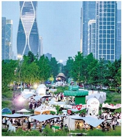 在钱江世纪公园独具特色的“公园式”外摆场景,63家商户拓展出近4000平方米的外摆空间。与热闹喧嚣的夜市不同的是,这些外摆空间往往更具设计感和休闲氛围。在专属的外摆区域内,桌椅错落有致,绿植点缀其间,共同构成一幅悠闲而精致的城市生活图景。通过个性化的场景营造,该商圈在开放外摆的首个季度就实现营收同比增长约44%,外摆经济的带动效应显著。