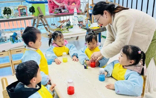 光看怎么过瘾?轮到小科学家们大显身手了!在“魔法师”和老师们的帮助下,孩子们拿起自己的魔法瓶用力摇晃。“我的变成蓝色了!”“看,我的是红色!”整个教室变成了一个五彩斑斓的实验室。孩子们不仅记住了各自的颜色,更感受到了探索和发现的乐趣。