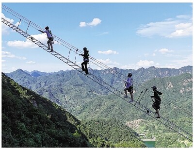 轻极限体验项目成为年轻游客新宠:乾潭镇老鹰岩山地运动露营公园推出UTV越野车等项目,国庆预约率超80%;勇峰自行车公园专业级赛道吸引周边运动爱好者前来“狂飙”解压;马岭天观景区新增高空飞拉达项目,与悬空玻璃栈道形成白天轻极限体验组合;航空小镇同步推出滑翔伞轻极限体验、无人机足球竞技,深化“跟着赛事游建德”品牌。