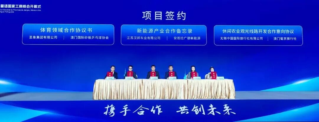 10月22日上午,在中国•葡语国家中小企业圆桌会议上,智博机车作了“数字化转型与葡语国家摩托车市场发展新机遇”的专题发言,讲述“丰县智造”生动实践。会前智博机车负责人还接受了澳门日报专访。在第十五届江苏——葡语国家工商峰会上,丰县汉邦车业与安哥拉合作伙伴签约,合力拓展安哥拉及非洲市场。