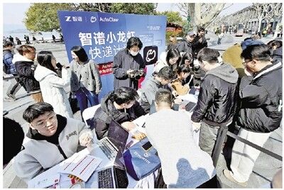 从中午开始,滨次元AI文旅驿站外的12号场地就排起了长队。“如果不是Mac,系统得升级到win10以上。”来自浙江智谱新篇科技有限公司(以下简称“智谱”)的志愿者牛继堂耐心地向市民解释。短短两小时,他已经装了40多台。
