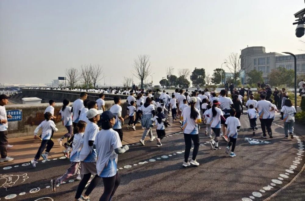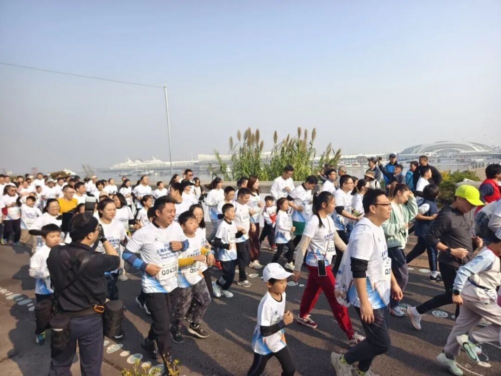 11月22日上午,在江海环抱的独特景观中,宝山滨江迎来了2025上海长滩五公里亲子跑活动。近2000名参赛的大、小跑者相聚在上海·海上世界广场,一边热身一边期待亲子跑比赛的开幕。9点30分,伴随着高亢悠扬的汽笛声,参赛家庭在观赛市民的欢呼声中携手冲出起跑线,点燃了冬日宝山的运动激情。