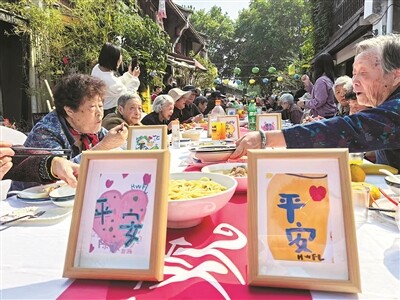 近百位老人齐聚小河直街,欢度重阳佳节。