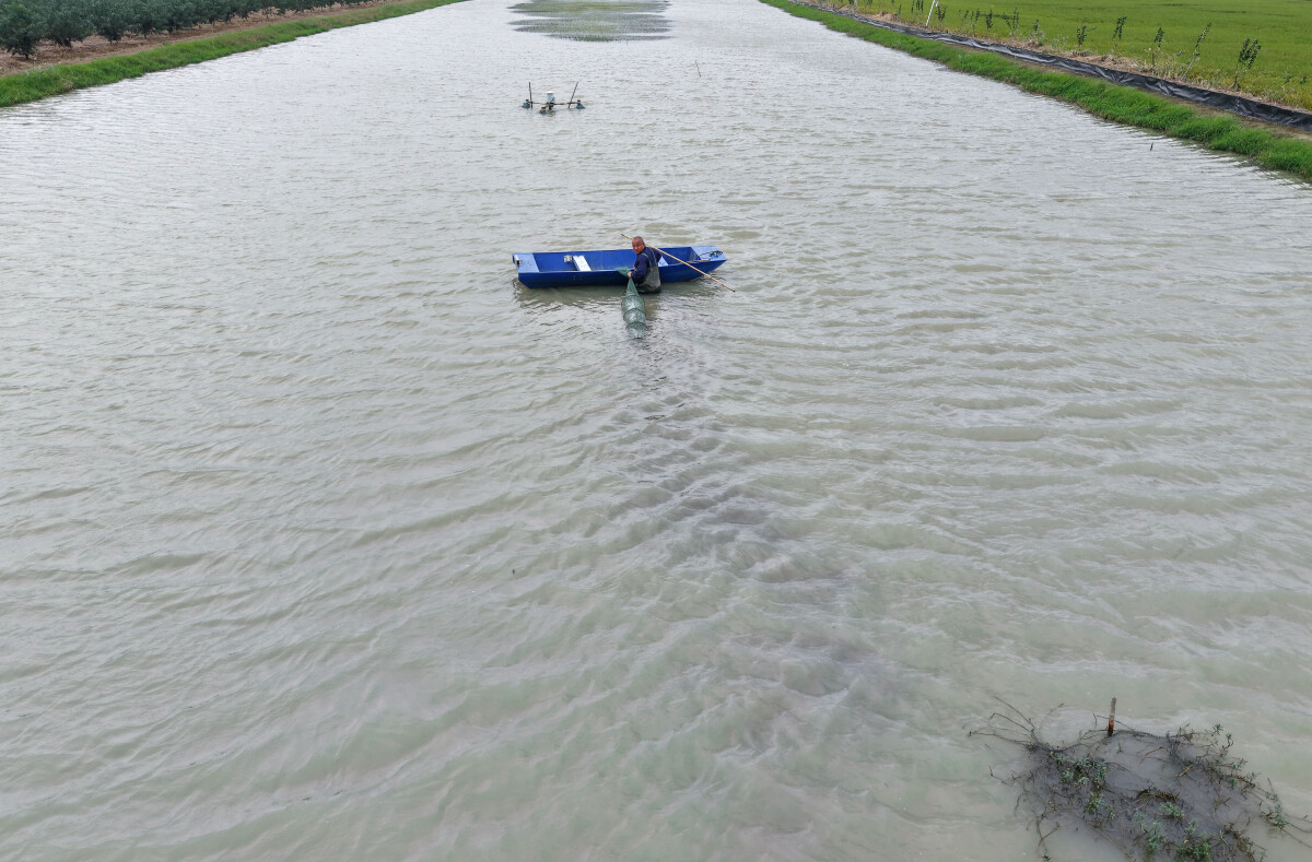 从1月投苗到10月收获,在超过10个月的养殖周期里,袁开满与爱人蒋芜凤将全部心血倾注于这片蟹塘。蟹塘底部的增氧系统和水车式增氧机在持续运作,塘埂上遍布他们日复一日巡塘的足迹。“每天凌晨起床,沿着塘边慢慢走一圈,蹲下来细看螃蟹的状态——这是我们多年不改的习惯。”