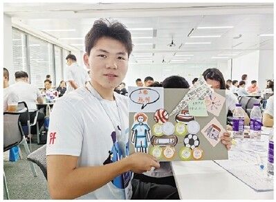 特奥东亚区运动员领袖培训活动上,王畅向其他特奥运动员介绍自己。