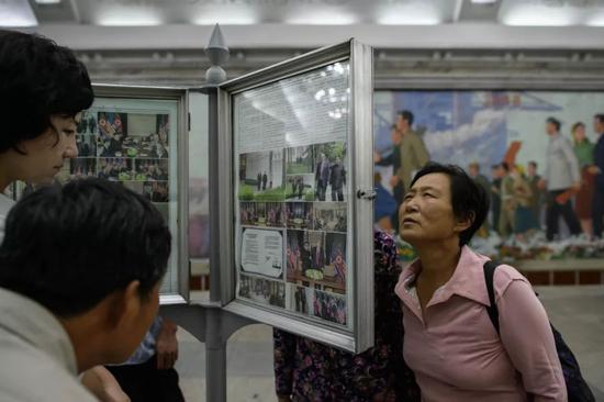 △当地时间2018年6月13日,朝鲜平壤,朝鲜民众关注朝鲜最高领导人金正恩与美国总统特朗普在新加坡会晤的消息。