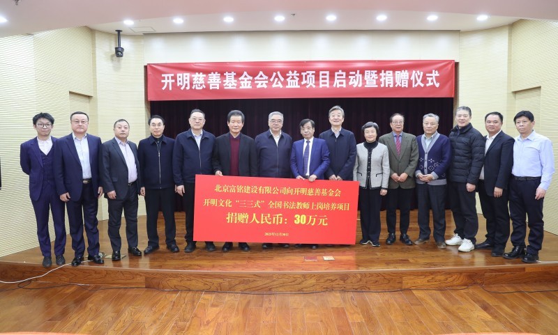 启动仪式中安排了“北京富铭建设有限公司向开明慈善基金会开明文化“三三式”全国书法教师上岗培养项目捐赠人民币30万元”捐赠环节