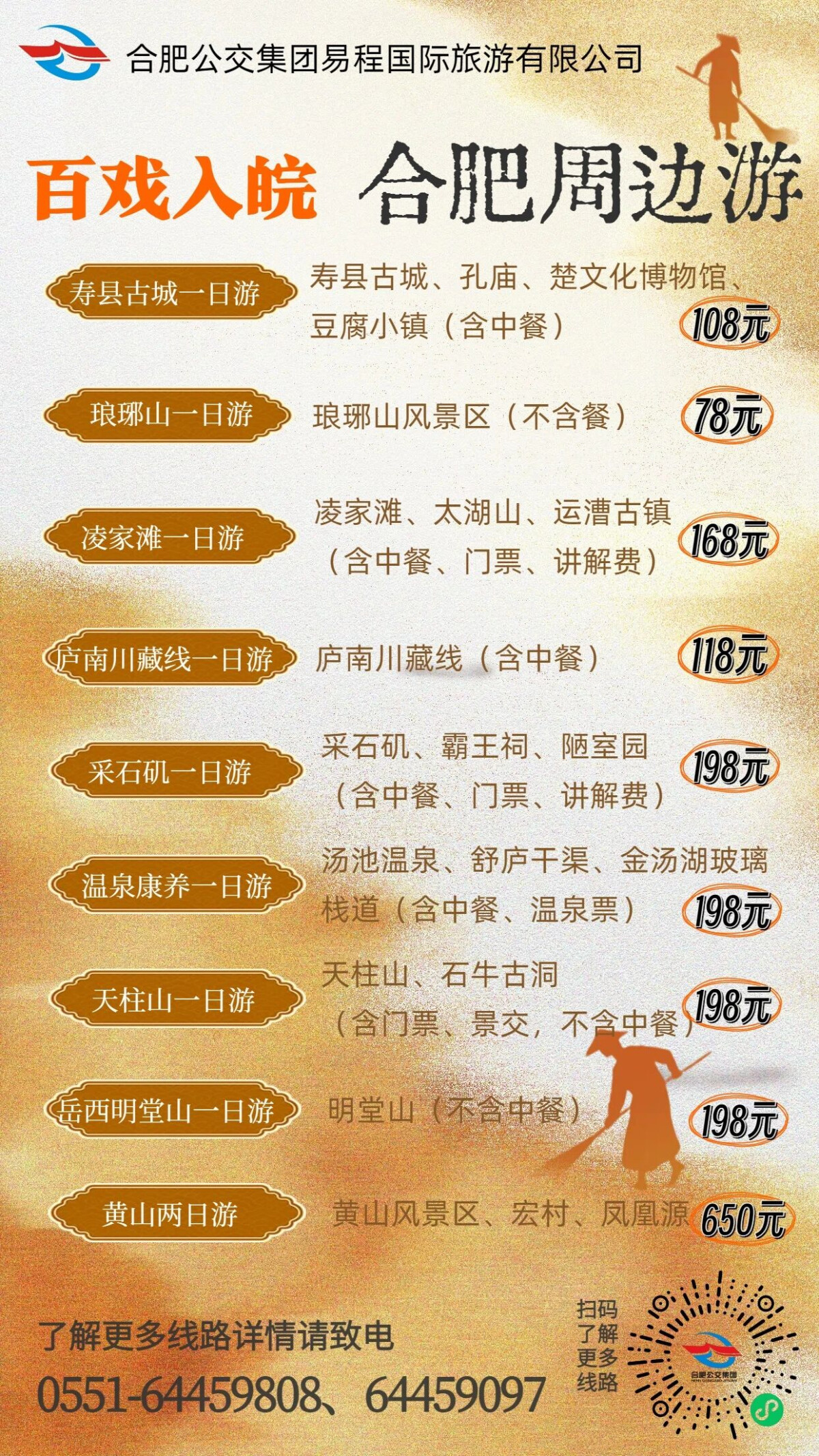 活动期间,合肥公交集团通过“合肥公交”APP/微信小程序等平台开设“百戏入皖”专属通道,支持一键购票、线路查询与在线咨询,也可在携程同步搜索合肥公交小程序同款线路下单。同时,在合作酒店设立文旅推广展台,提供现场报名与专业讲解服务,真正实现“即报即走、安心成团”。