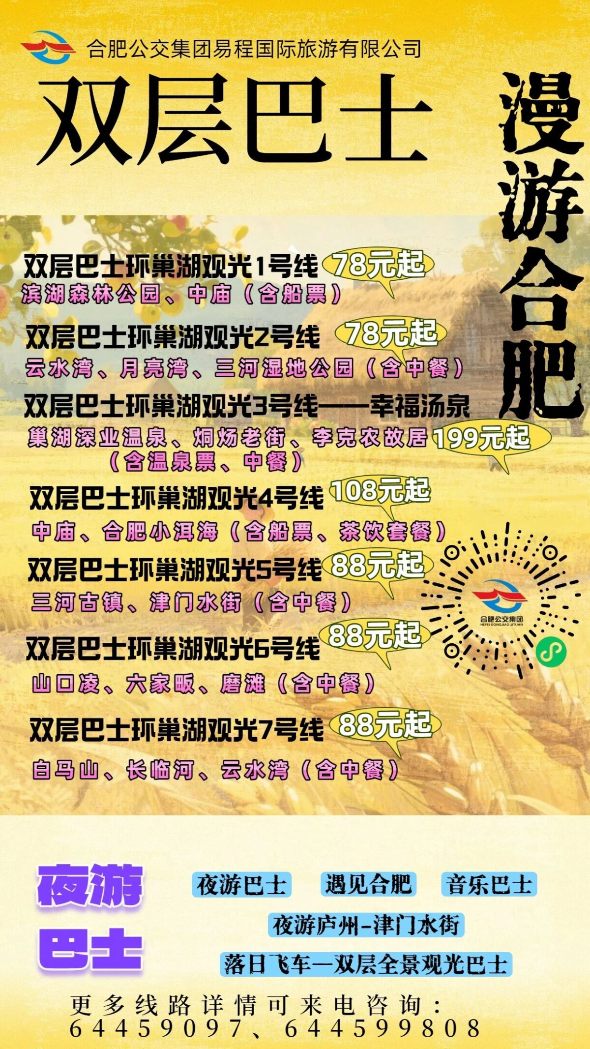 线上平台:“合肥公交”APP / 微信小程序 → 点击首页“夜游巴士” →选择“百戏入皖”专区。
