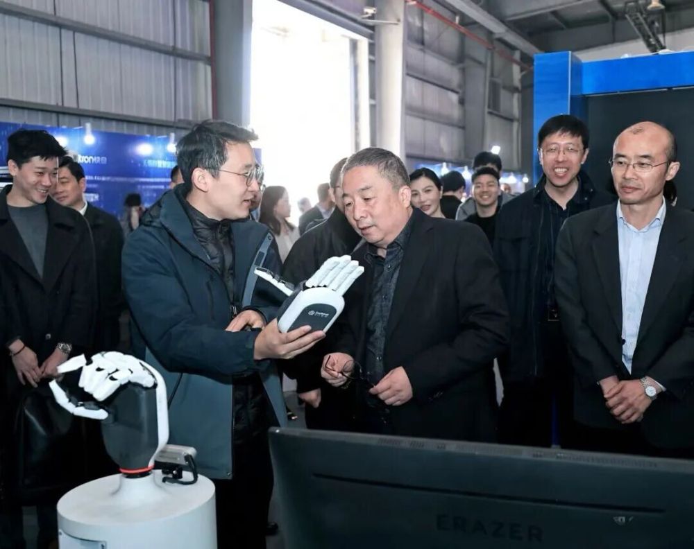 与会领导、嘉宾参观智能机器人及核心部件展览。