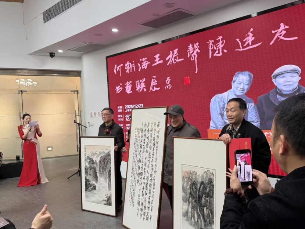 12月23日上午,“三树联珠”何朝海、王振声、陈廷友书画联展在合肥赖少其艺术馆隆重开幕。