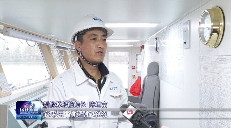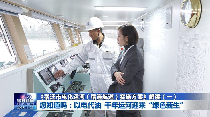 走进这艘新能源船舶内部,空间干净明亮。未来,像这样的货轮将在宿连航道上广泛投入使用,成为运河上一道独特的风景线。那么,“电化运河”究竟是什么?《宿迁市电化运河(宿连航道)实施方案》给出了清晰答案:电化运河是以航道整治、港口码头建设为基础,通过绿色智能船舶建造应用、岸电设施布局,构建零碳排放的内河航运体系。简而言之,就是用清洁的“电”替代传统的“油”,让往来船舶“变绿”,也让大运河“畅快呼吸”。