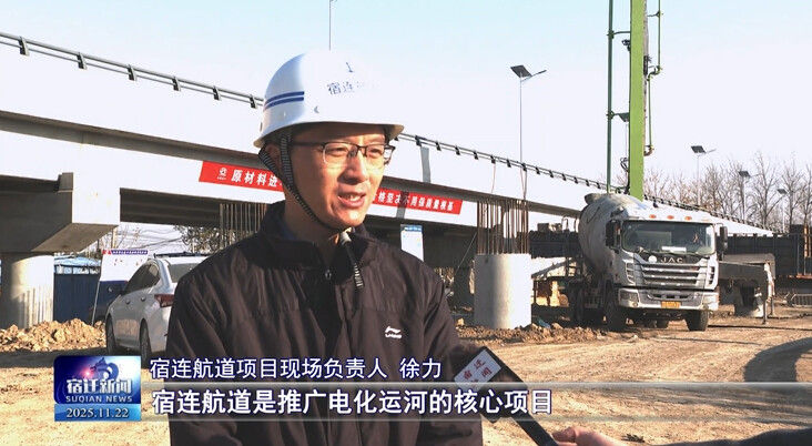 “宿连航道是推广电化运河的核心项目,我们在航道沿线规划建设港口码头、待泊锚地、水上服务区等配套工程的同时,增设了新能源船舶换电站、充电站等配套设施,通航后可满足新能源船舶充电、换电等需求。预计到2030年,航道可实现2000吨级新能源船舶全天候通航。”宿连航道项目现场负责人徐力说。