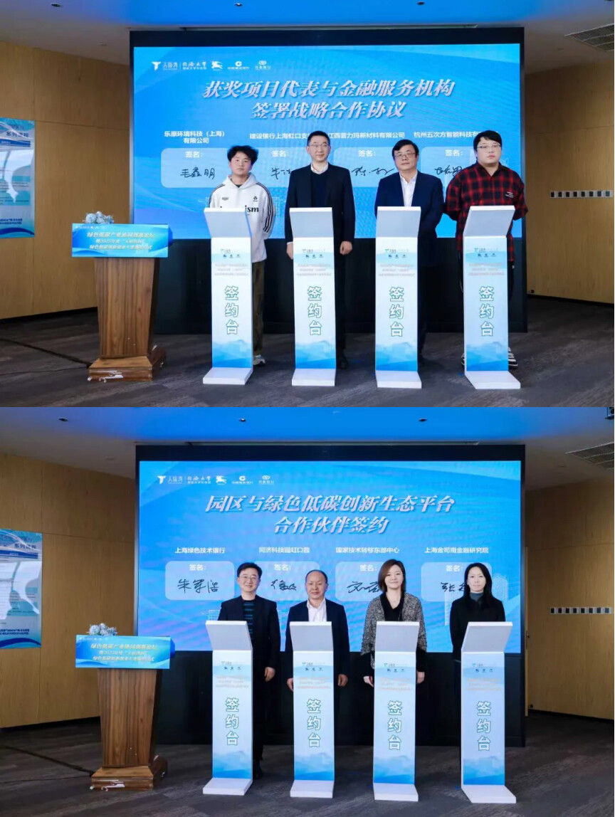 活动现场,江西普力玛、上海蓝集微科技、二冷环境科技等多个获奖项目与同济科技园虹口园签署了落地合作协议,并与建设银行、兴业银行等金融机构达成战略合作,获得产业孵化与金融支持的双重助力。