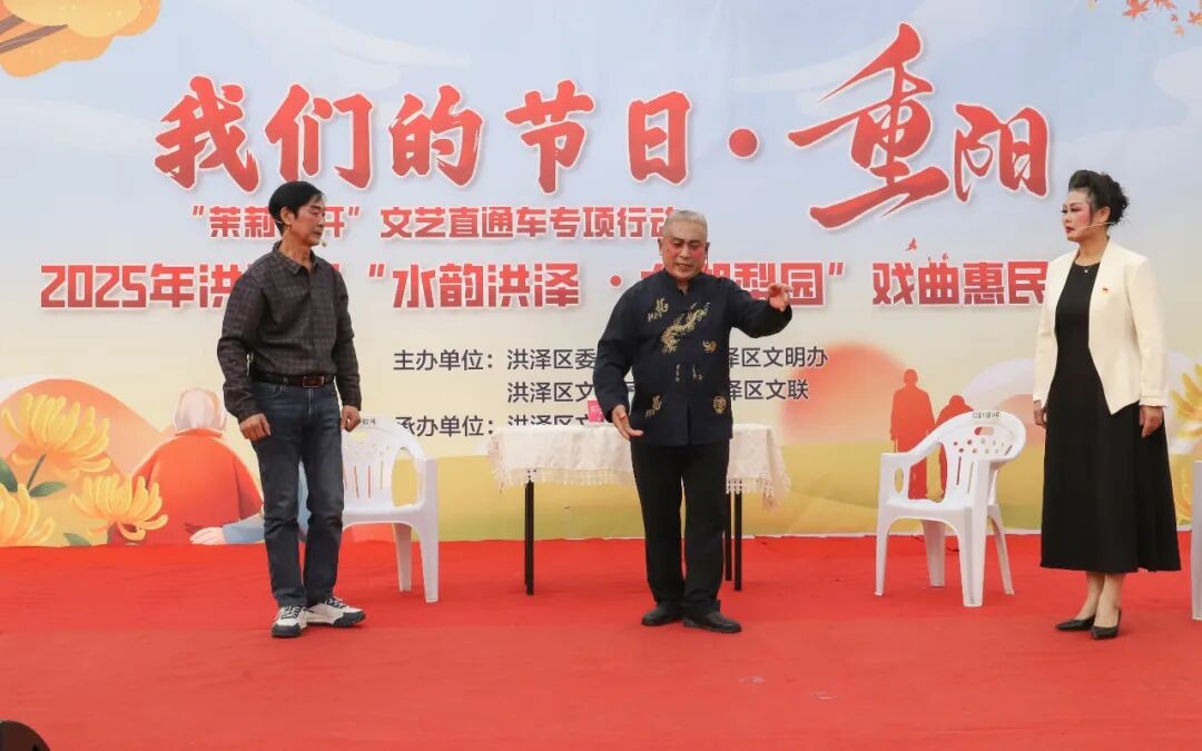 洪泽湖畔秋意浓,梨园飘香韵悠长。10月29日下午,“我们的节日・重阳”暨“茉莉花开”文艺直通车专项行动在高良涧街道富民社区广场精彩上演。活动以“文化+服务”为核心,集书画展览、文明实践服务、戏曲展演于一体,为社区居民送上一场“有文化、有服务、有温度”的重阳盛宴。