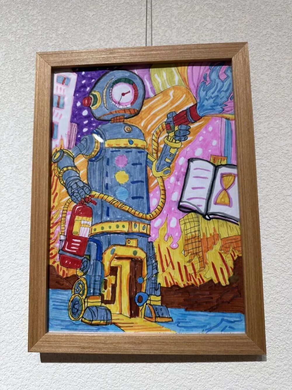 区消防救援局相关负责人表示,优秀作品将在M50创意园持续展陈至11月17日,方便市民前来参观打卡。同时,工作人员已将部分优秀设计合集制作成消防文创环保袋,后续将通过各类科普宣传活动在区域内进行分发,让少年们的“消防幻想”成为传播安全知识的移动载体。