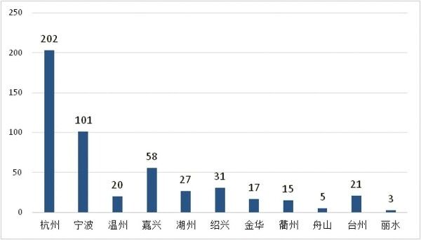 榜单数据显示,浙江高企创新能力呈现显著的“区域集聚效应”。杭州以202家上榜企业位居榜首;宁波101家紧随其后,占500强总数的20.2%,形成“双核引领、错位发展”的格局。