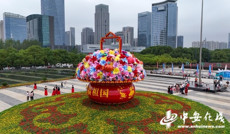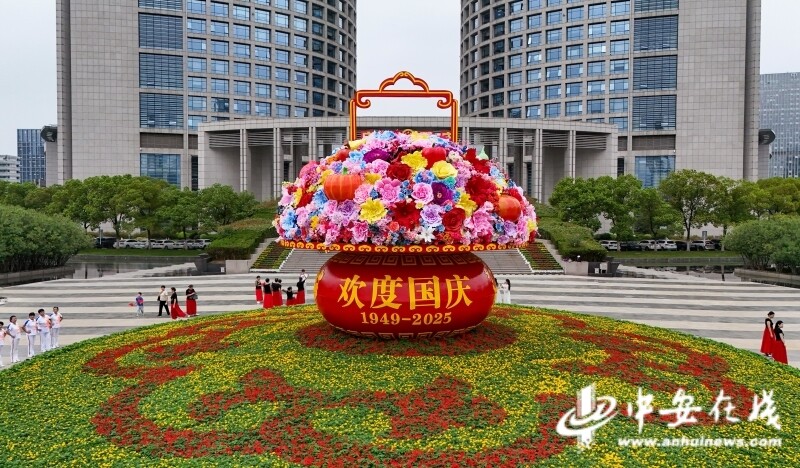 随着国庆临近,合肥街头节日氛围日益浓厚。市政务中心广场上的“欢度国庆、祝福祖国”大花篮成为市民拍照打卡的热点,吸引众多市民前来合影留念。(记者 刘职伟)
