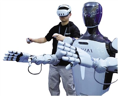 过去一年,人工智能和人形机器人迎来爆发式发展。除了宇树、智元等机器人领域的先行者,越来越多的高校、新兴企业也加入到这一热潮中来。在博览中心B馆,两名浙江理工大学的学生带来了他们参与开发的一款仿生表情机器人“哪吒”。“你叫什么名字?”“我叫哪吒!”随着记者的提问,“哪吒”一边回答,一边作出生动的表情。“这款机器人有30多个用于模拟人类表情、肌肉动作的自由关节,它的眼珠也是可以转动的。只要输入相应的人物设定数据,通过大模型训练,理论上可模仿任何一个真人或者动漫角色。”课题组研发人员表示,相比运动机器人,仿生表情机器人能更好地满足用户的精神需求,在陪伴、接待、文旅等场景有广阔的应用前景。