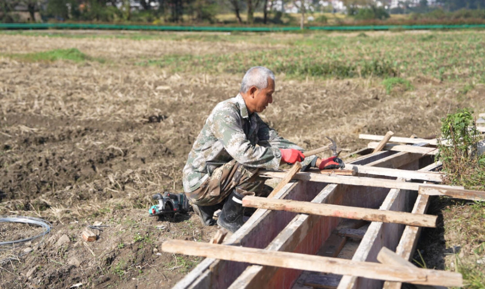 “原来这水渠是石头垒的,年头久了到处是裂缝,一放水就漏水,下游的田经常浇不上水。”站在田埂上,泉栏村党总支书记林海指着正在浇筑的渠段介绍。缪运怀是村里的种植大户,共承包了120亩农田,进行油菜、水稻的种植。“这条渠引水对我家的这片农田影响特别大,以前旱季得半夜起来守着放水,哪儿漏了就赶紧堵上,等这个水渠修好了,就不用遭这份罪了。”缪运怀的农田就分布在水渠沿线,他望着忙碌的施工队,脸上满是期待。