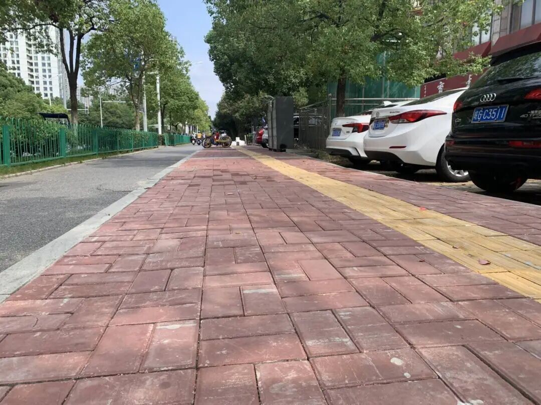 今年8月初,修复工作正式启动,800余平方米的人行道整体翻新,更贴心的是,此次修复不仅解决了路面破损开裂、坑洼不平的问题,还重点完善了盲道铺设,并降低了人行道路口高度,实现路口与人行道的平缓衔接,让居民推行轮椅、通行婴儿车时无需费力抬升,真正实现便捷出行。同时为减少对居民出行的影响,施工队伍采取逐段施工、隔离防护模式,错峰推进作业,确保通行与施工“两不误”。
