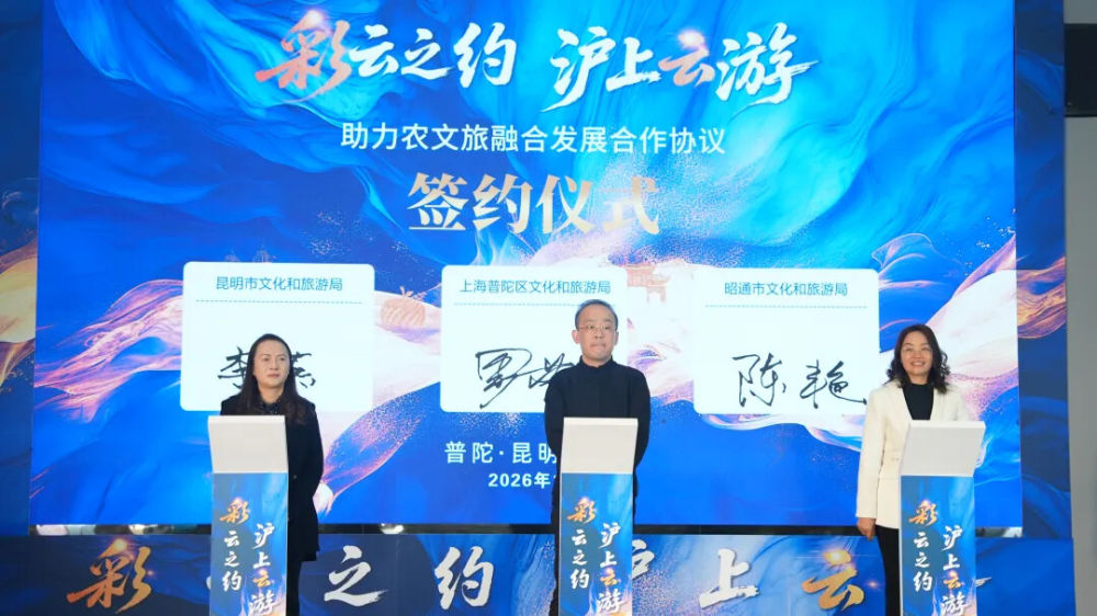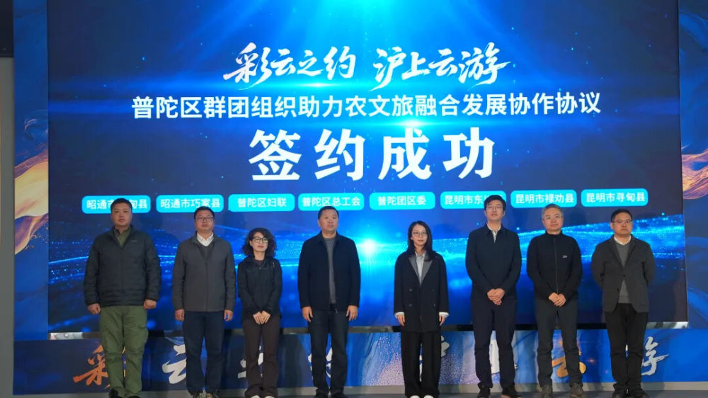 现场,普陀区文旅局与昆明市文旅局、昭通市文旅局共同签订《助力农文旅融合发展合作协议》,将联合策划特色农文旅产品与精品线路,开展资源对接与宣传推广,共同激活市场潜力;昆明市东川区、禄劝县、寻甸县及昭通市鲁甸县、巧家县,与普陀区总工会、团区委、区妇联等群团组织签订《普陀区群团组织助力农文旅融合发展协作协议》,为对口帮扶地区农文旅资源走向更大市场搭建了坚实桥梁。