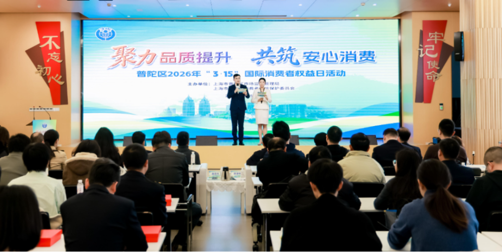 3月15日上午,普陀区2026年“3・15”国际消费者权益日活动举行。紧扣“提升消费品质”年主题,旨在树立诚信教育典范、营造良好消费环境、持续激发消费活力。活动以“聚力品质提升共筑安心消费”为主线,弘扬诚信经营理念,统筹凝聚各方共识,推动消费者权益保护协同共治,打造更加安全放心的消费环境,助力普陀建设“协同创新活力区、半马苏河品质区”。