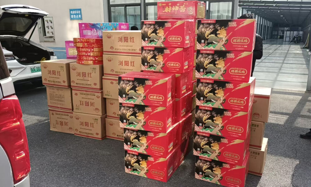 当天上午10时左右,民警在肥东县魏武路附近开展巡查时,发现一名面包车形迹可疑,随即依法将车辆截停进行盘查,打开车门后发现,小小的面包车内居然整齐码放着60多箱烟花爆竹。