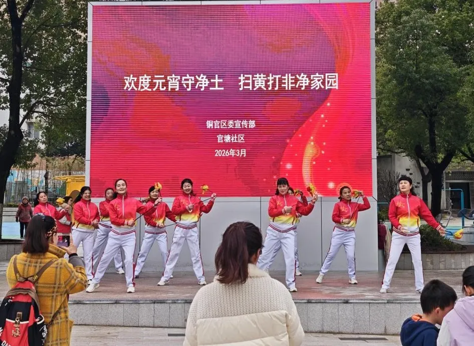 3月2日上午,官塘社区联合区委宣传部依托“我们的节日·元宵——文明新风伴团圆”文艺汇演开展“欢度元宵守净土 ‘扫黄打非’净家园”活动。(官塘社区 陈帅)