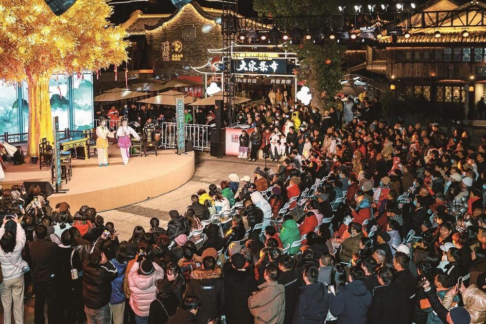 老街焕发新韵,缘于当地发挥历史文化遗产价值激发的发展活力。路桥区着力推动非遗与旅游、商贸、科技、演艺等领域深度融合,打造新型文旅消费业态与公共文化空间。同时,该区通过“非遗+夜游”模式,创新打造夜间非遗体验项目,发展夜间传统戏剧、曲艺展演及水街一体实景演出,重现宋韵水上市井繁华,进一步提升了省级夜间文旅消费集聚区的吸引力。