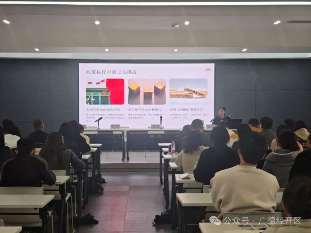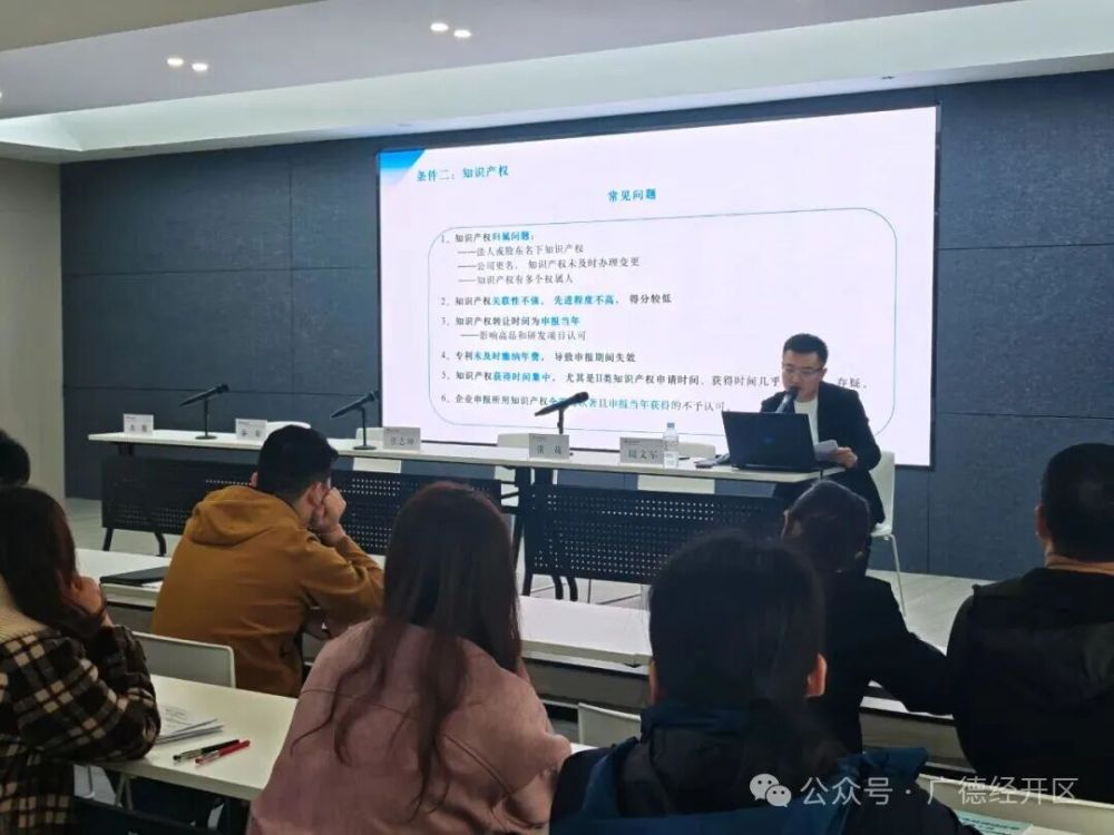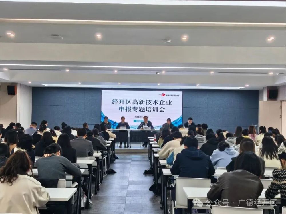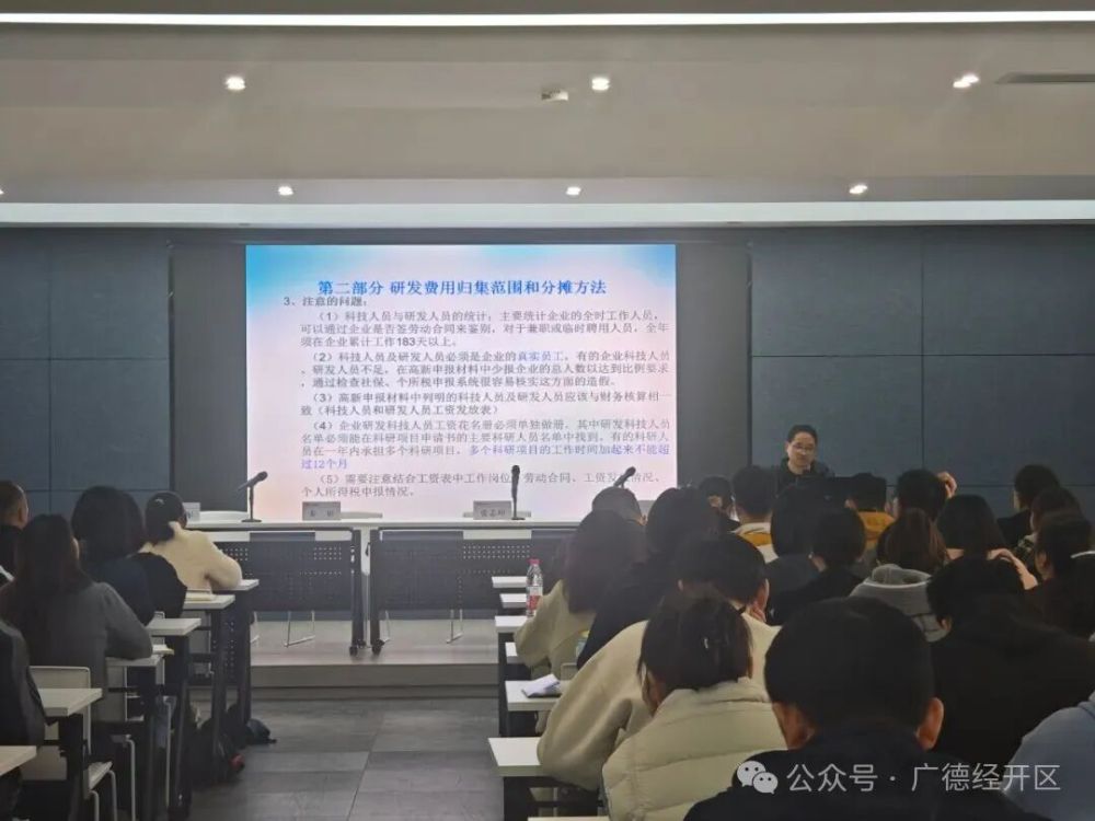 11月7日,广德经开区科技和人才局联合税务分局共同组织开展了“高新技术企业专题培训会”,园区内80余家企业分管负责人、财务人员参加。本次会议旨在精准服务园区企业,深入解读高企认定政策与实操要点,助力企业抢占科技创新制高点,为经开区高质量发展注入强劲新动能。