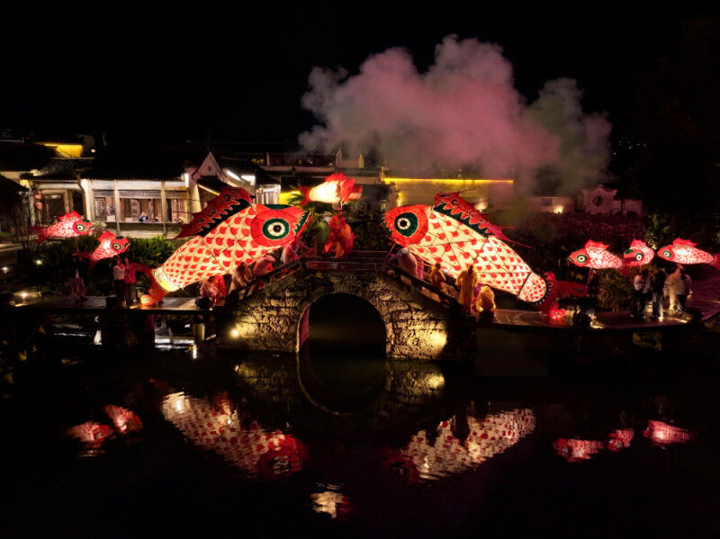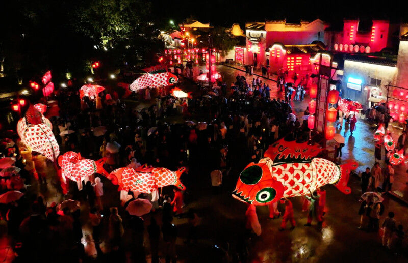 近日,一场别开生面的非遗鱼灯巡游活动在徽州区呈坎古村热闹上演,众多游客沉浸其间,在互动中感受民俗魅力。