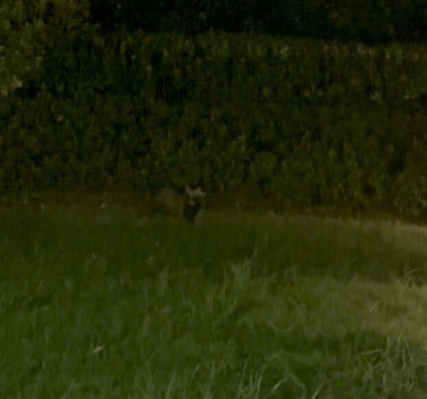 小区居民也拍到了一段视频。记者在画面中看到,一只毛色偏暗的小动物在花丛间穿梭,动作轻盈,偶尔停下嗅一嗅地面,之后消失在灌木深处。因为它体型不大,尾巴较短,不少人纷纷猜测它的“身份”。