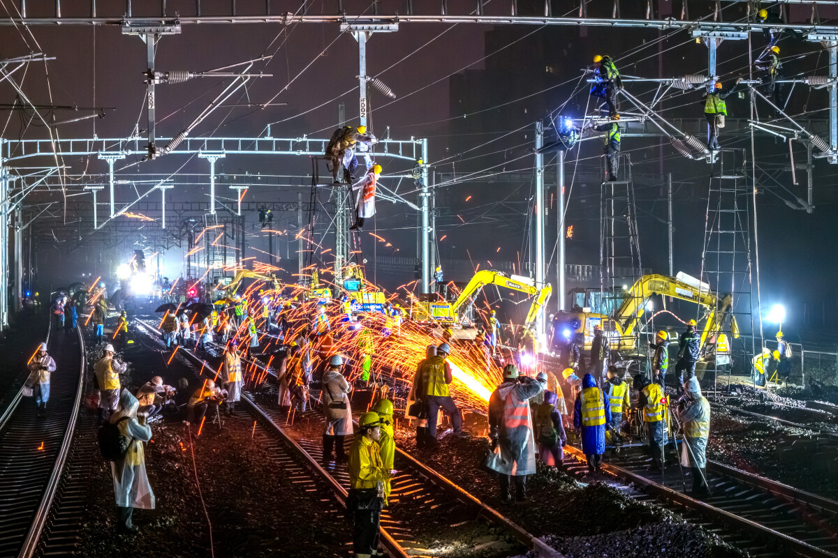 施工期间,现场共投入35台套机械设备、17台车梯,9个接触网专业小组与10个信号专业小组协同作业,保障工程顺利推进。合肥西站自2023年启动站场改造以来,参建团队已先后完成桃花镇线路所至竹溪站至新建派河线路所至肥西站区间电气化改造,以及合福铁路二次改移、合武铁路改移等多次施工。